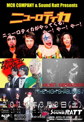 2014/03/08 by in PickUp, ニューロティカ 日時2014/03/08 19:00 - 19:30 場所福知山Sound Ratt 3/08(土)京都福知山Sound Ratt ニューロティカがやってくる! やー! やー! やー! w/ALIEN OBSERVER/↑THE HIGH SHABLOWS↓/アルコールスパイキー 19:00/19:30 2500円/3000円 チケット予約あります↓ 問)福知山Sound Ratt:0773-27-2260 Tweet 地図を読み込んでいます・・・ 福知山Sound Ratt福知山市前田1466-2 - 京都府ライブ 35.2969035 135.15109110000003 チケット予約はこちら